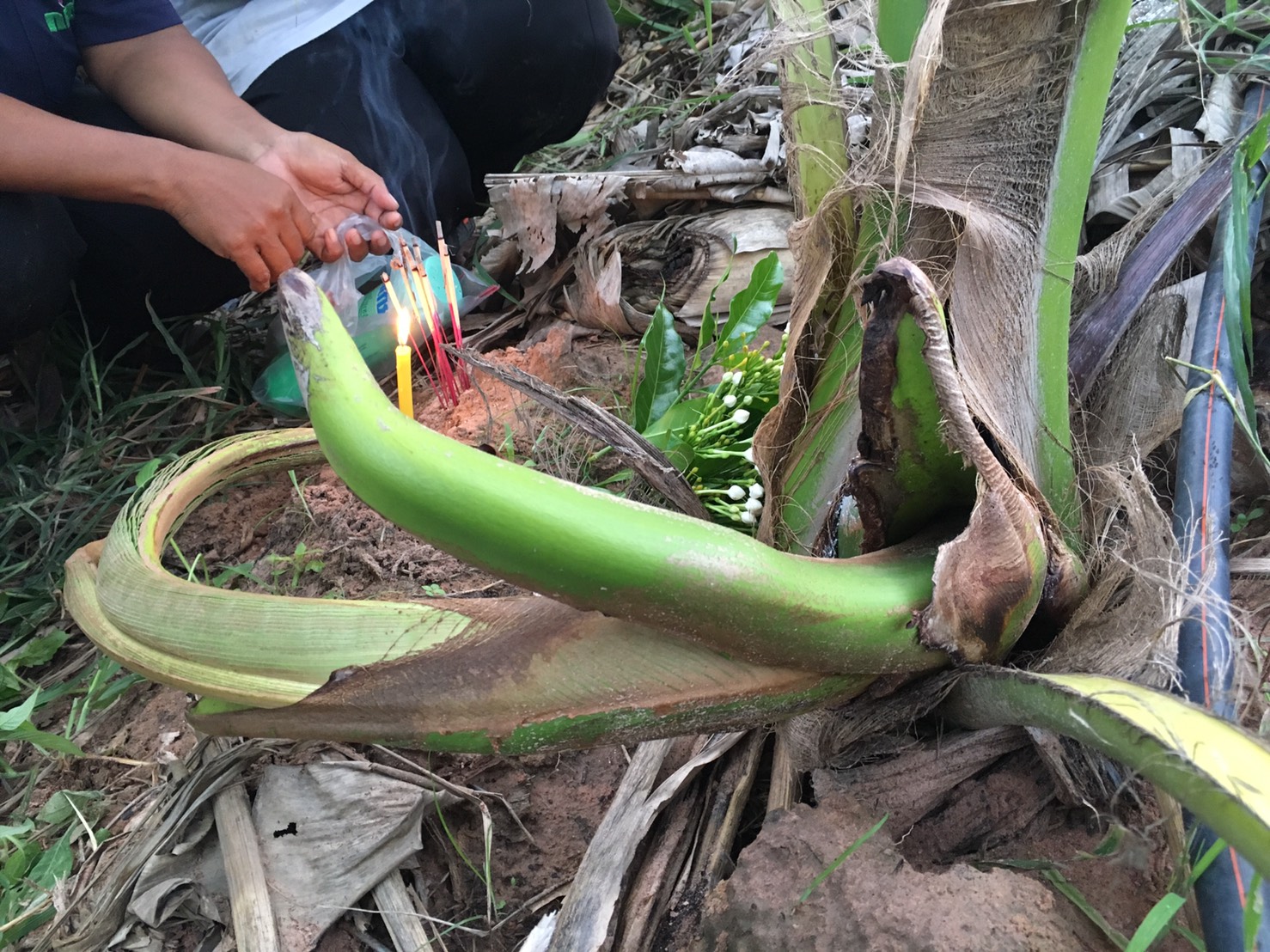 เมื่อไปถึงพบนางกิตติยา สุขวาสนะ อายุ 45 ปี เจ้าของบ้านพาไปดูต้นมะพร้าวน้ำหอม แตกต่างจากต้นอื่นโดยสิ้นเชิง มียอดที่แตกออกมาจากลำต้นคล้ายกับ งาช้าง หรือ งวงช้าง ดูแล้วอัศจรรย์ โดยมีชาวบ้านนำดอกไม้ ธูป เทียน มากราบไหว้ขอโชคลาภและนำแป้งมาทามองหาเลขกันอย่างคึกคัก