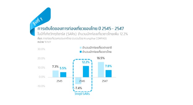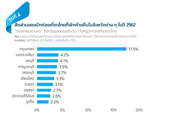 รายได้จากการท่องเที่ยวถือเป็นรายได้หลักของเศรษฐกิจไทย โดยในปี 2562 มีสัดส่วนถึง 16% ของ GDP โดยเป็นรายได้จากนักท่องเที่ยวต่างชาติที่ 10% ของ GDP ซึ่งคิดเป็น 61% จากรายได้ท่องเที่ยวทั้งหมด ขณะที่ในปี 2563 นักท่องเที่ยวต่างชาติไม่สามารถมาเที่ยวไทยได้ เนื่องจากสถานการณ์การระบาดของโควิด-19 ทำให้ Krungthai COMPASS ประเมินว่า จำนวนนักท่องเที่ยวต่างชาติจะหดตัวถึง 80% หรือมีจำนวน 8.1 ล้านคน ซึ่งลดลงจากปี 2562 ที่มีจำนวน 39.8 ล้านคน