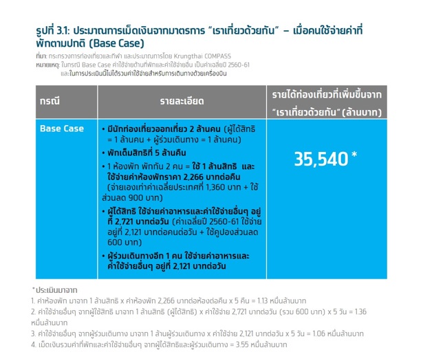 Krungthai COMPASS ได้ประเมินเม็ดเงินท่องเที่ยวที่จะเพิ่มขึ้นจากมาตรการกระตุ้นการท่องเที่ยวภายใต้โครงการ“เราเที่ยวด้วยกัน” โดยแบ่งออกเป็น 2 กรณี ดังนี้