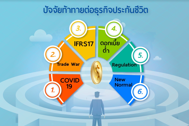 อย่างไรก็ตามในช่วงปี 2563 – 2564 ภาคธุรกิจยังคงเผชิญกับความท้าทายจากหลากหลายปัจจัย อาทิ สภาวะเศรษฐกิจทั่วโลกหลังไวรัสโควิด – 19 ระบาดยังคงมีความความเปราะบาง ภาวะอัตราดอกเบี้ยต่ำและมีแนวโน้มที่เกิดจุดต่ำสุดใหม่ได้อีก (New low-Yield) ส่งผลกระทบต่อธุรกิจประกันชีวิตในทุกมิติ ทำให้ธุรกิจประกันชีวิตต้องเร่งผนึกกำลังสร้างเกาะป้องกัน และจัดทำแนวทางที่จะบรรเทาผลกระทบที่อาจเกิดขึ้นในอนาคต